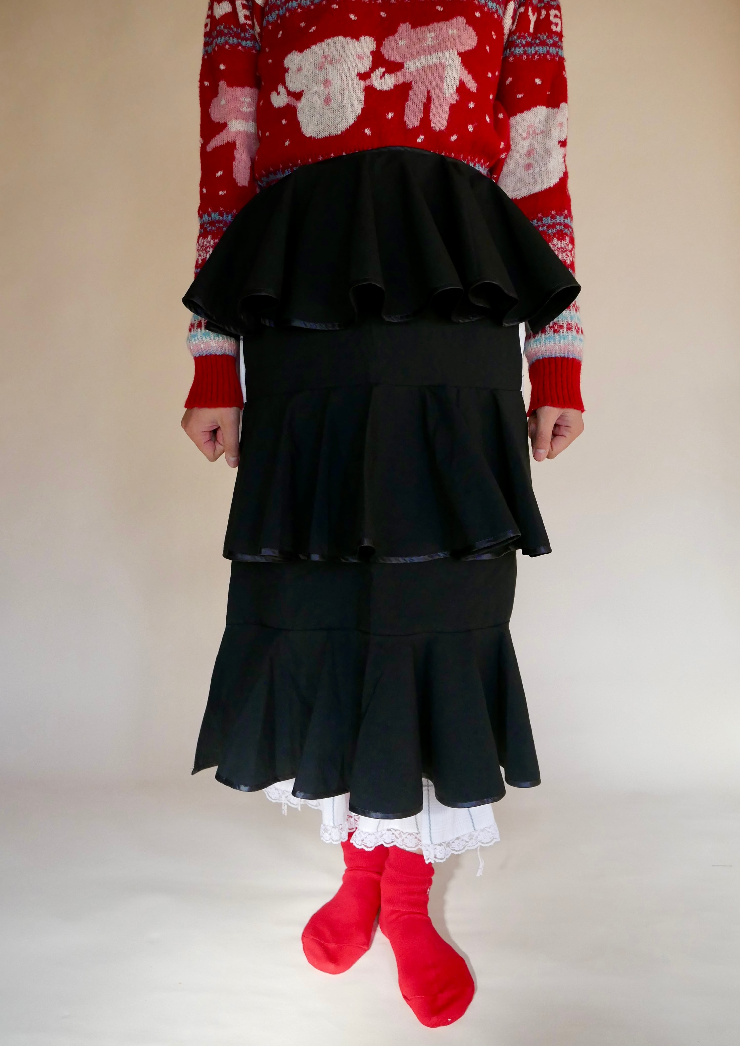 frill apron -black-